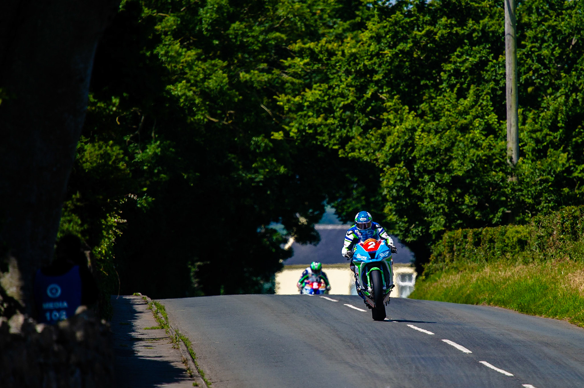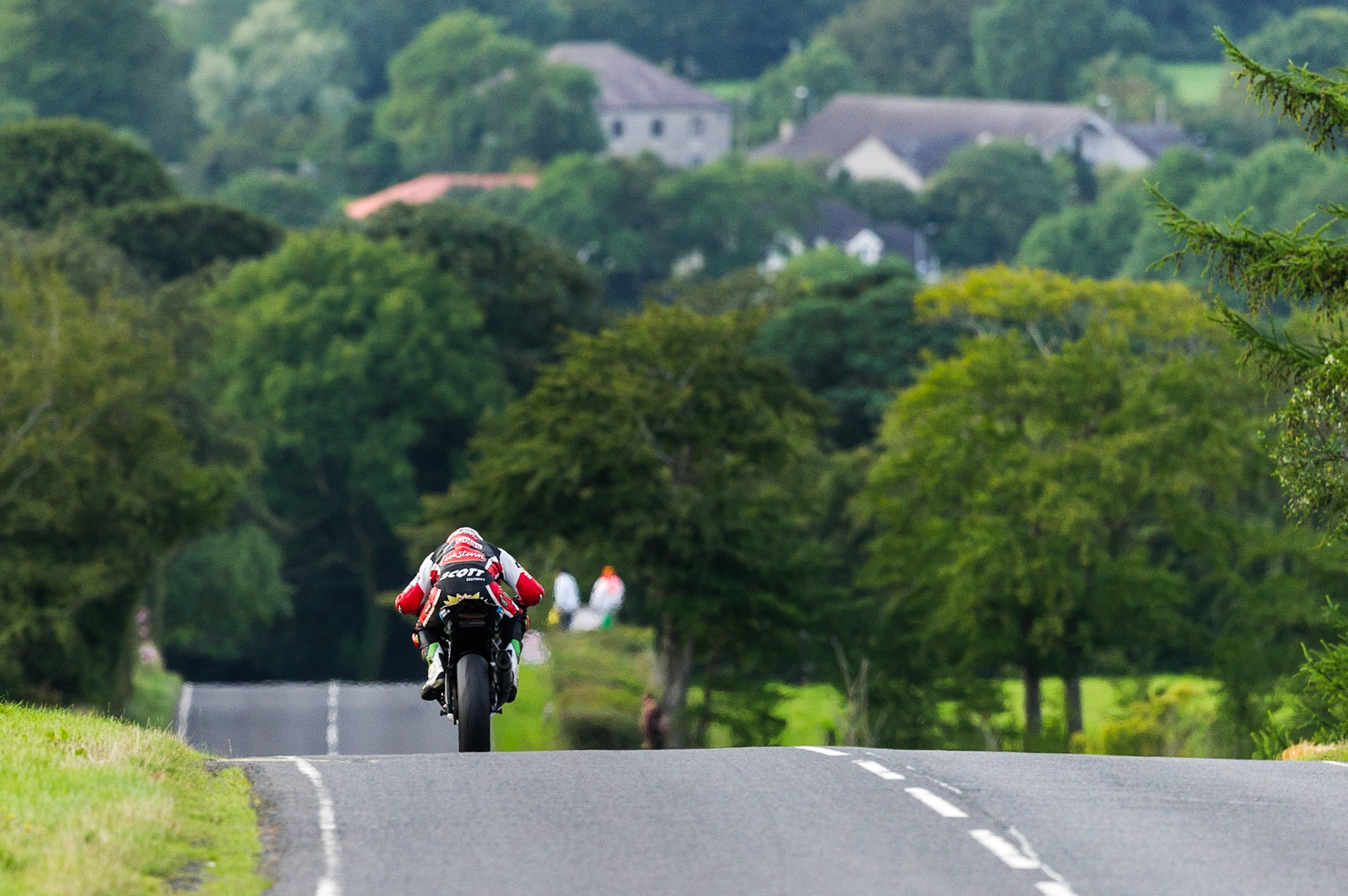 Micheal Dunlop leads the field into Iron Gate during one the Superbike races in 2012.